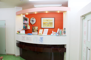 | 清潔感を重視したキレイなオレンジ色の受付です。ご予約のご相談だけでなく、治療についての疑問など、気になることはどうぞお気軽にご質問ください。 | |