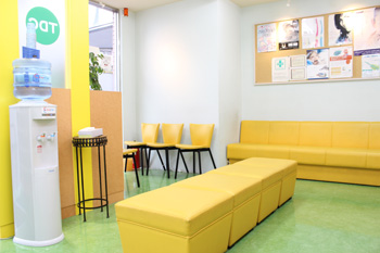 | 黄色を基調とした、明るい雰囲気の待合室です。診察の準備が整いましたらお名前をお呼びしますので、それまでリラックスしてお待ちください。 | |