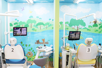 | 小さなお子様をお連れの方でも安心して治療を受けていただけるよう、キレイで広いキッズスペースを設置しています。 | |