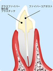 | ファイバーコア | 重度の虫歯治療で神経を取り除いた歯に被せ物をするときの歯の芯で、素材はグラスファイバーです。 |