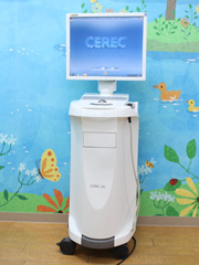 セレックとは、セラミック製の技工物を作製するCAD/CAMシステムです。従来の歯型採りに代わって、3D光学カメラで口腔内をスキャンするのみ。データをコンピュータに取り込んでモニタ上で設計し、ミリングマシンがセラミックブロックを削り出します。