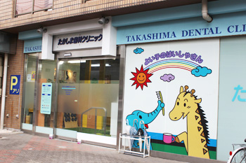 かわいい動物の壁画が目印です。お子様に、楽しく歯医者さんに通ってほしいという願いから描きました。 |